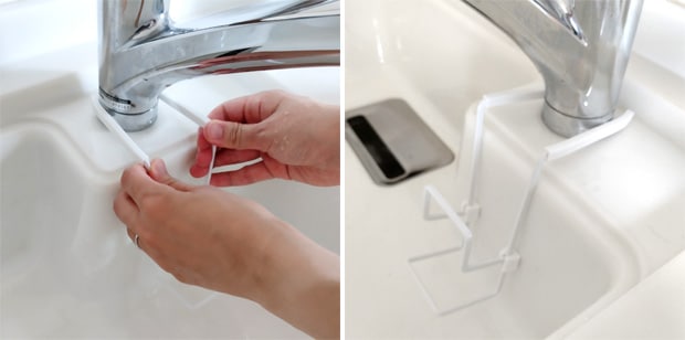 両手で開き、蛇口の根元を挟むようにセット。