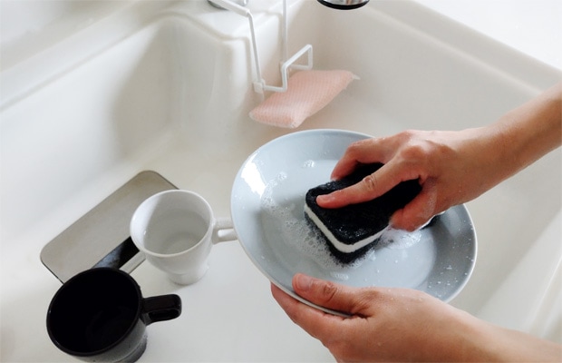 食器洗い用のスポンジを上に、