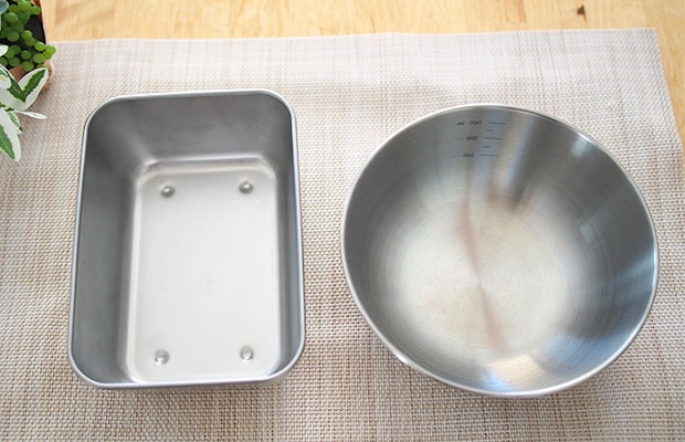 容量が同じ丸型ボウル(約800ml)と並べると、