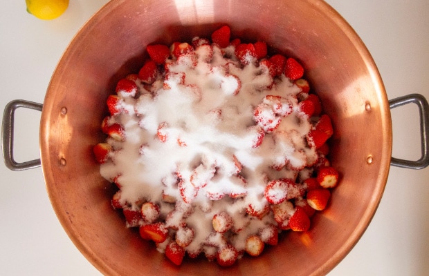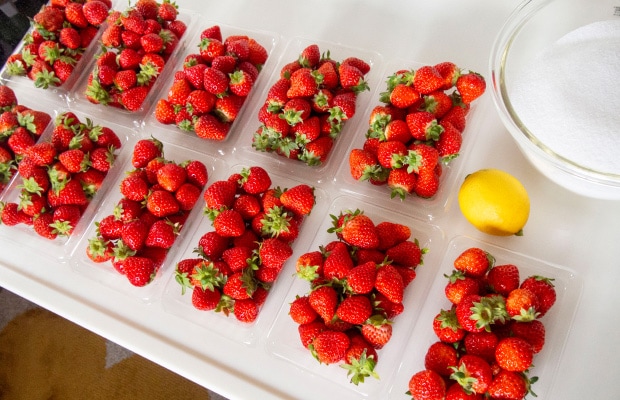 砂糖はイチゴの量の40%ぐらいを入れました。
