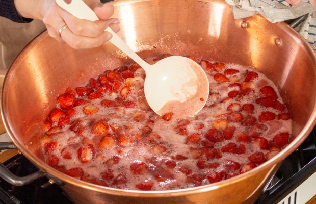 このひと手間で、きれいなジャムに仕上がるんですよ。