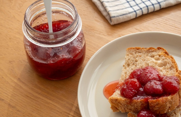 今回のジャムはイチゴを最初にカットせず煮込んだので、