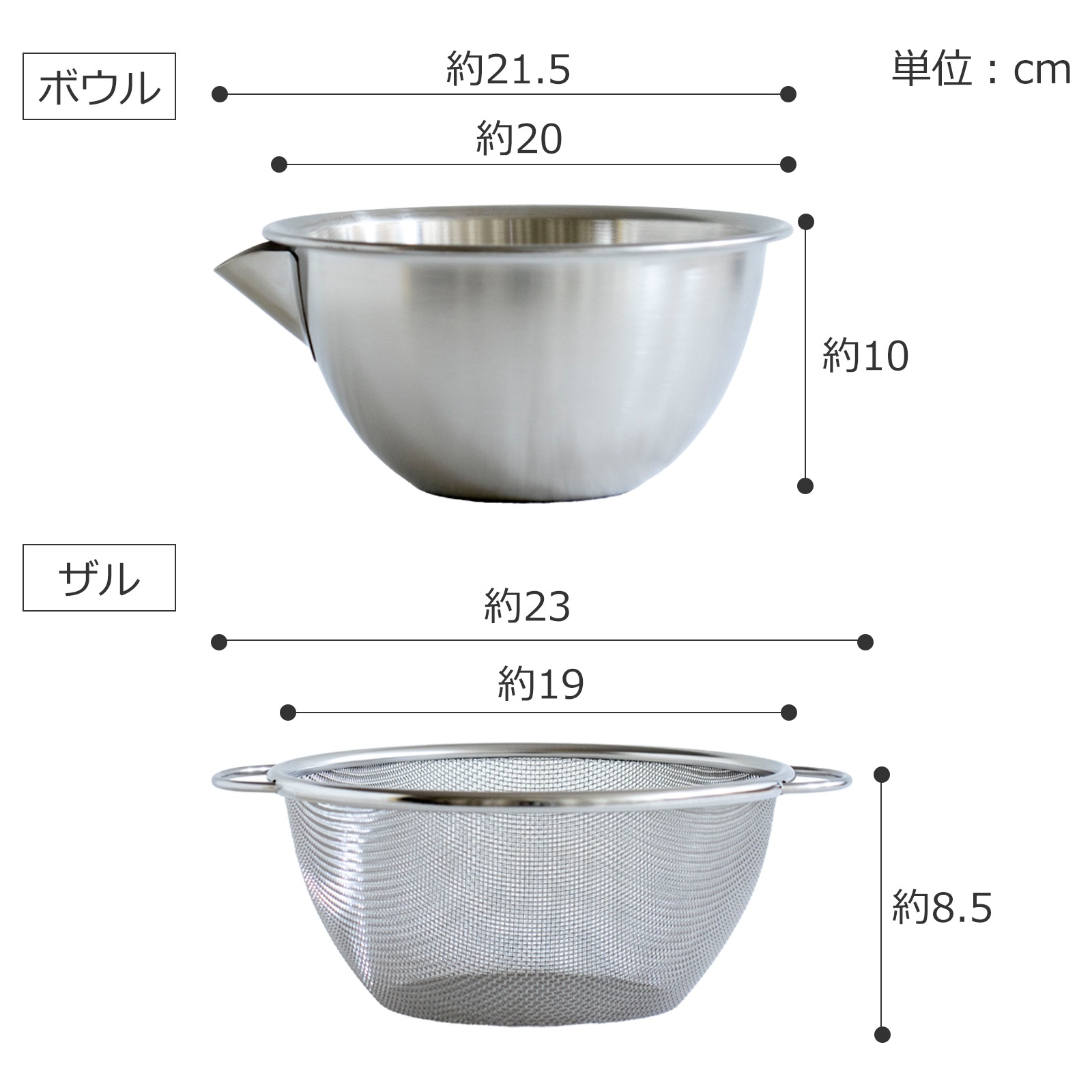 •横口ボウルザルセット 15はこちら>> •横口ボウルザルセット 20(現在の商品ページはこちら) •横口ボウルザルセット 26はこちら>>