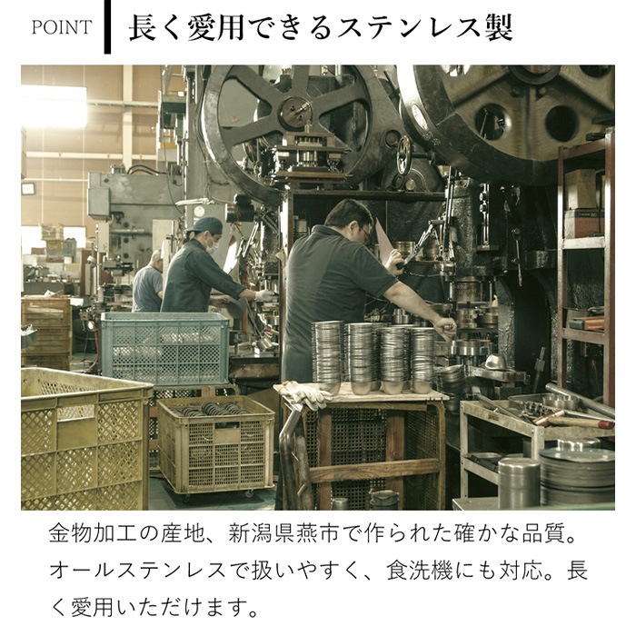 錆に強いステンレス製。食洗機に対応しているのでお手入れも簡単です。