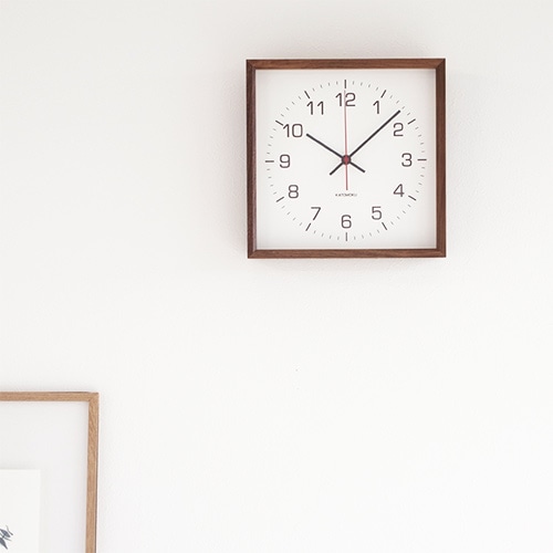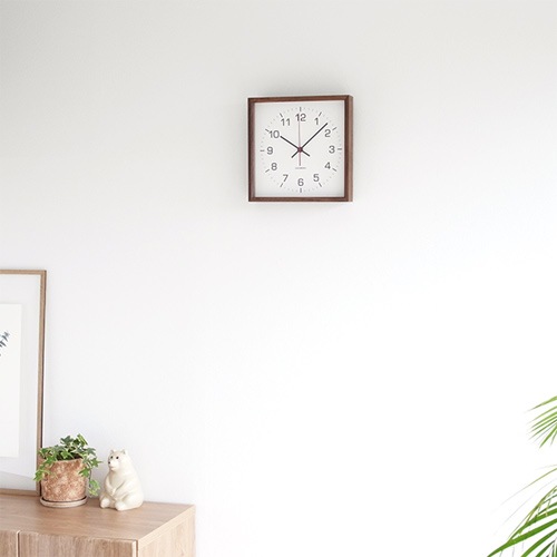 「Muku Square Clock」シリーズの四角い木枠に収めた