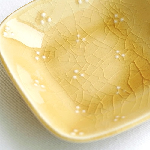鉄から生まれる落ち着いた黄色が特長の”黄瀬戸釉”と