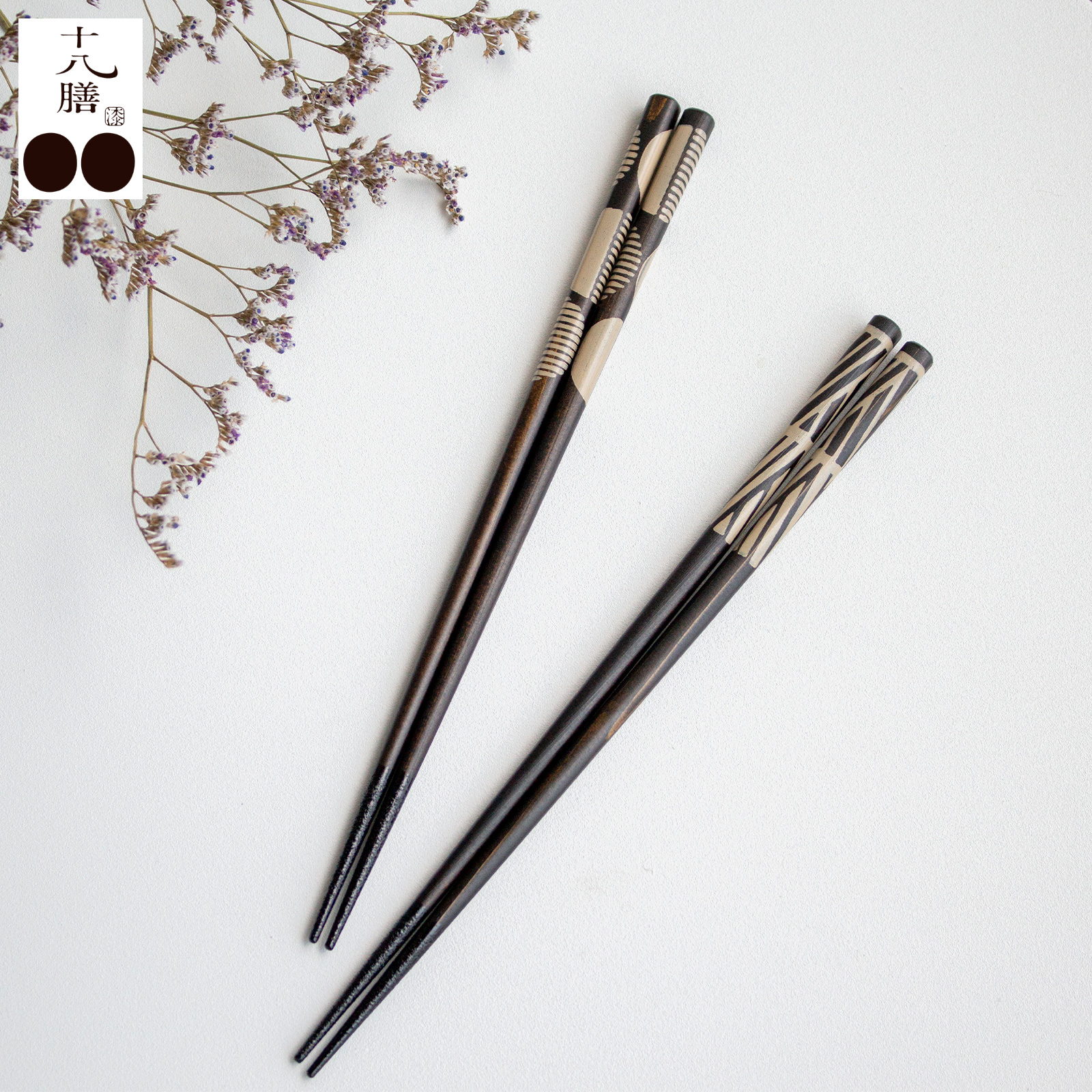 箸 おしゃれ 漆のお箸十八膳 くろしろ 黒 23 cm 1膳 天然木 能登ヒバ 日本製 木製 うるし 漆 橋本幸作漆器店