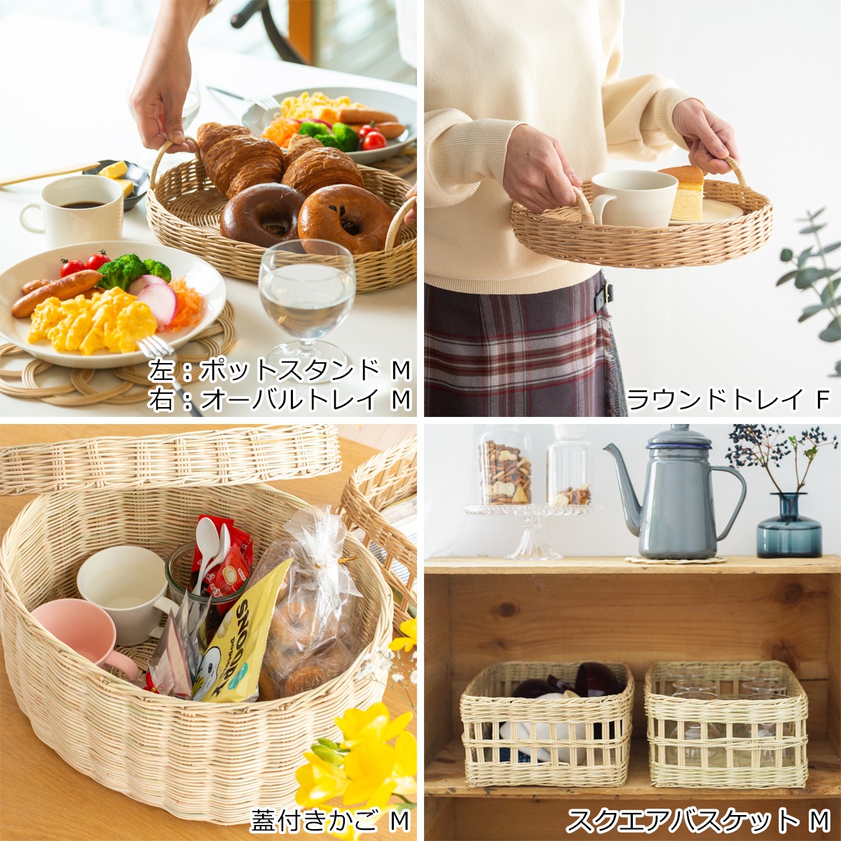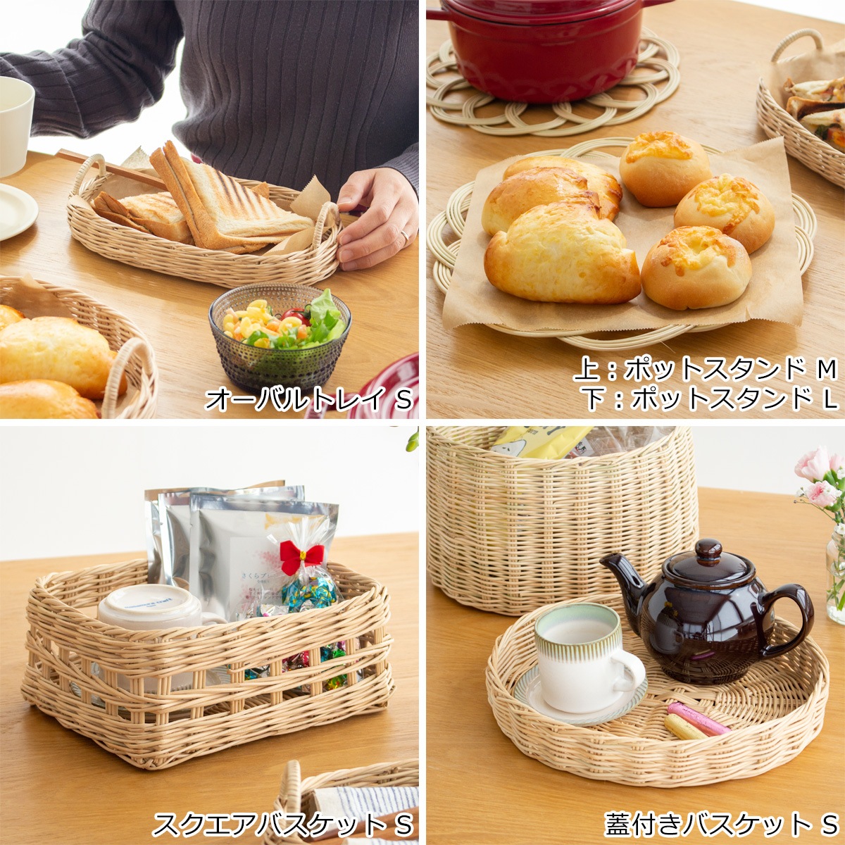 サイズ違いもご用意。重ねて収納できます。