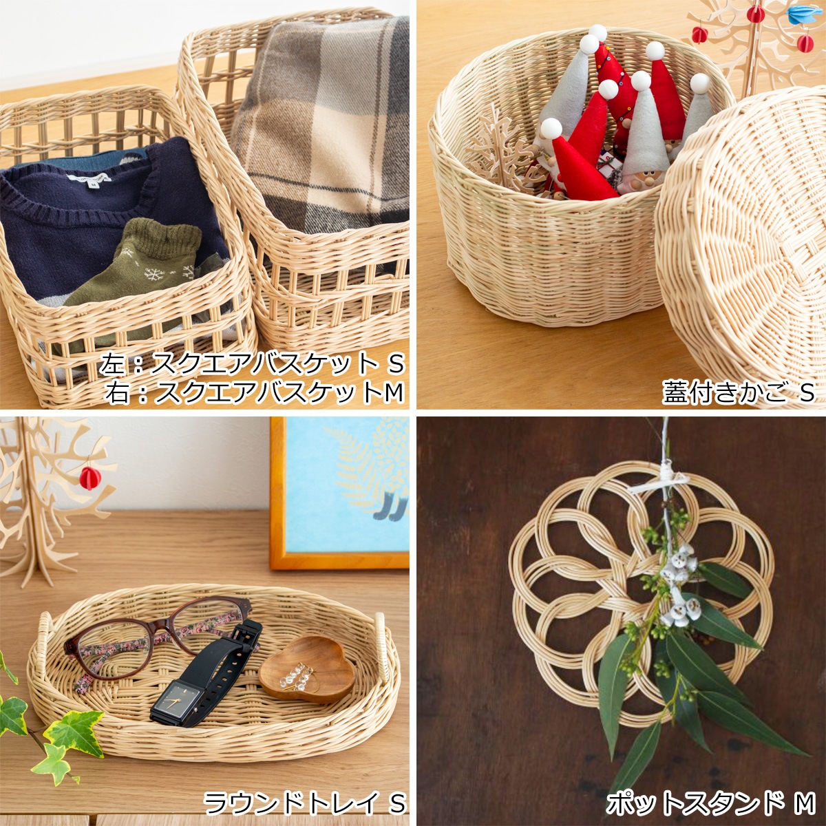 小物入れにぴったりの蓋付きかご S。