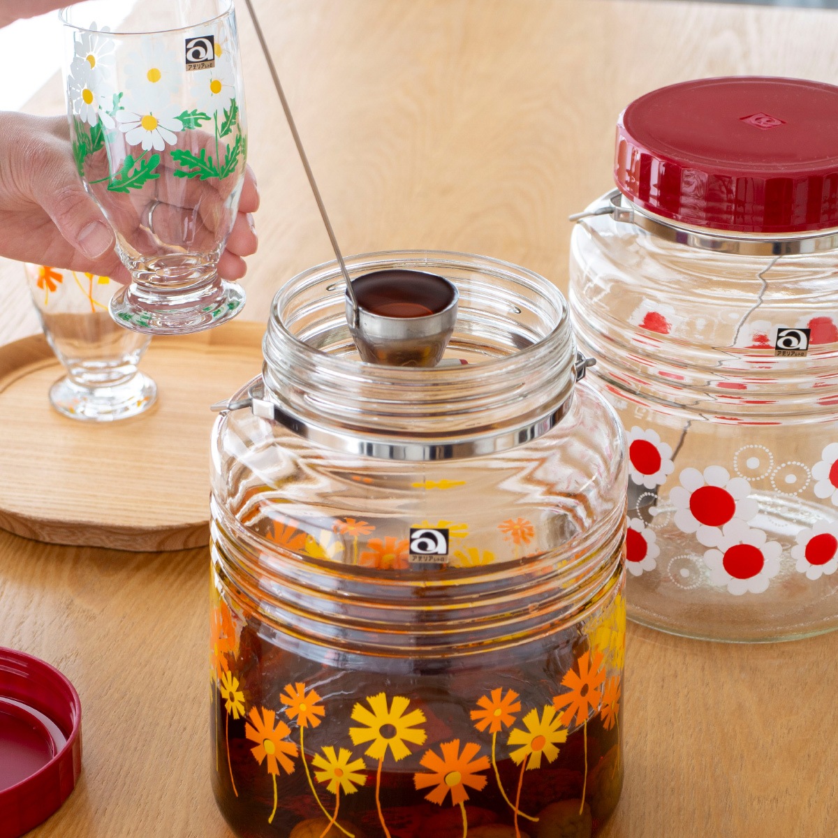 グラスや貯蔵びんなど、種類や柄も豊富なので
