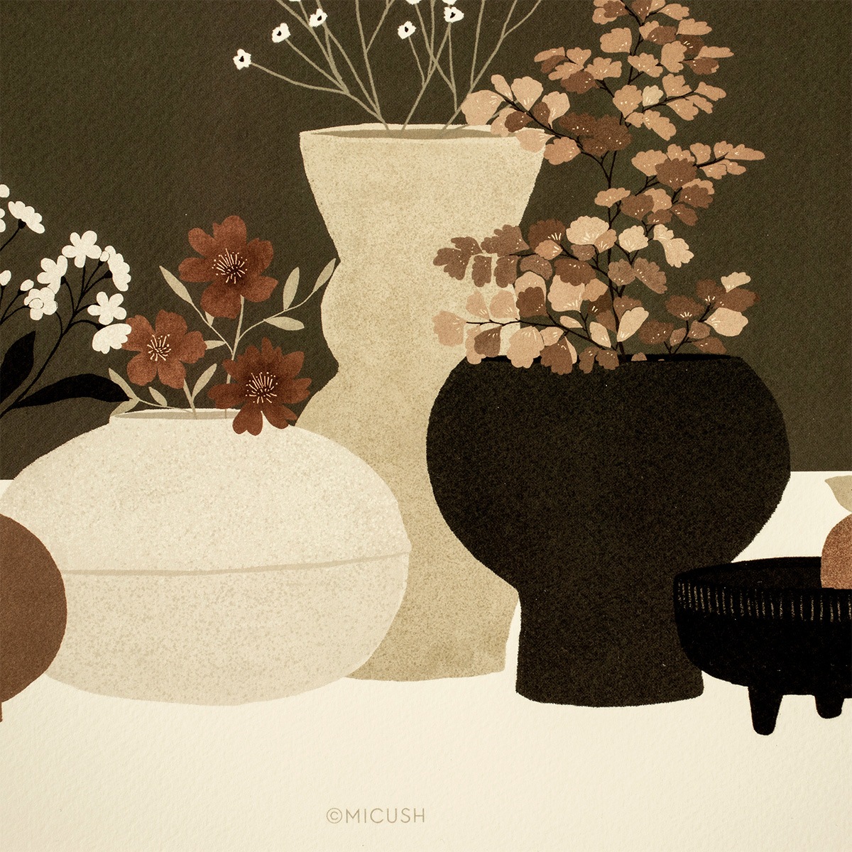POTTERY AND FLOWERS (dark brown) /