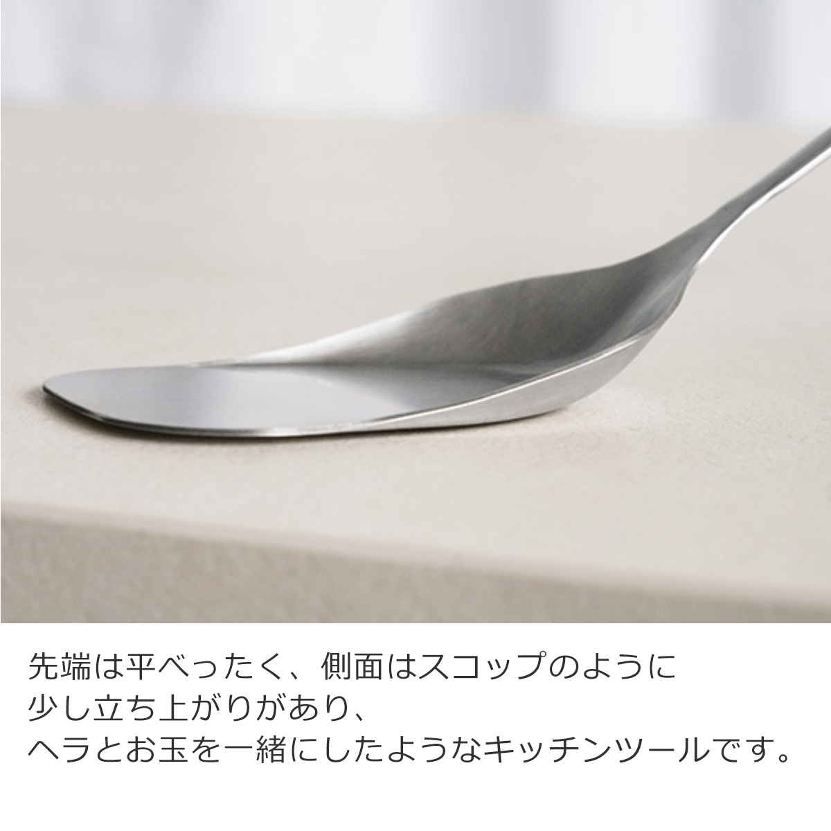 ヘラとお玉を一緒にしたようなキッチンツールです。