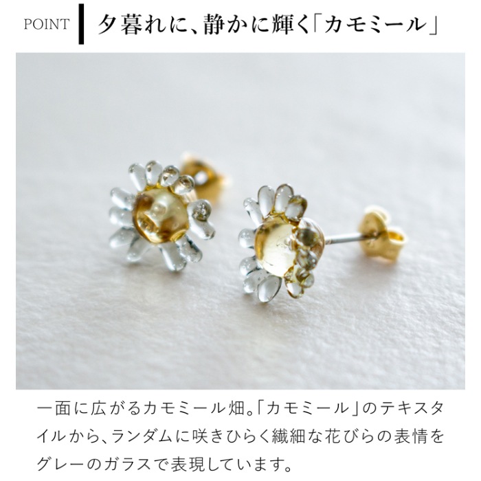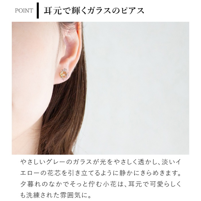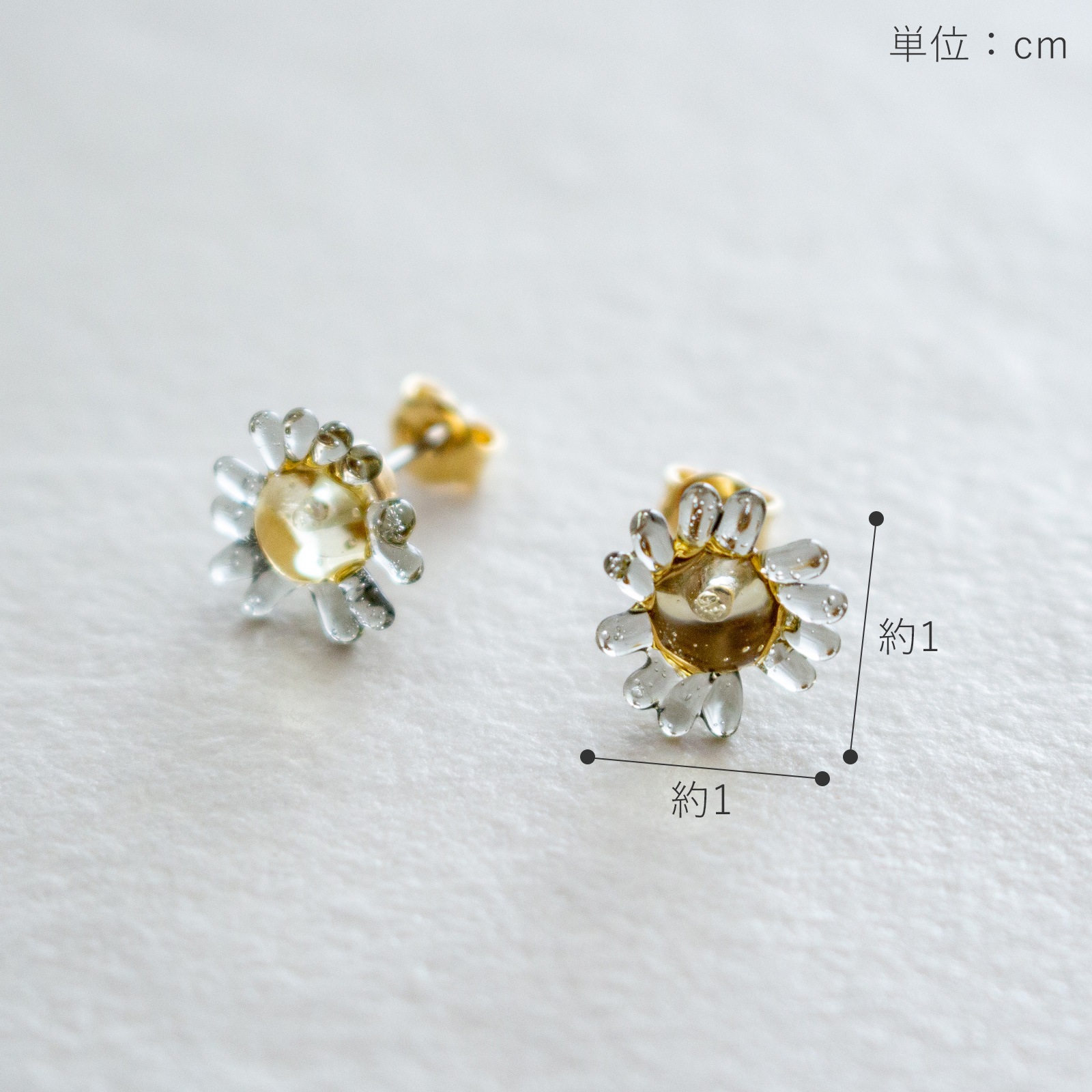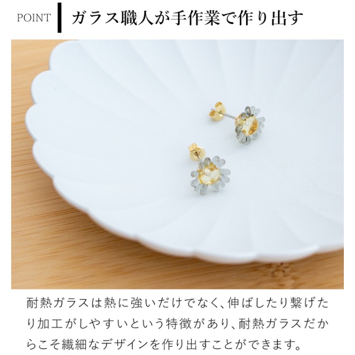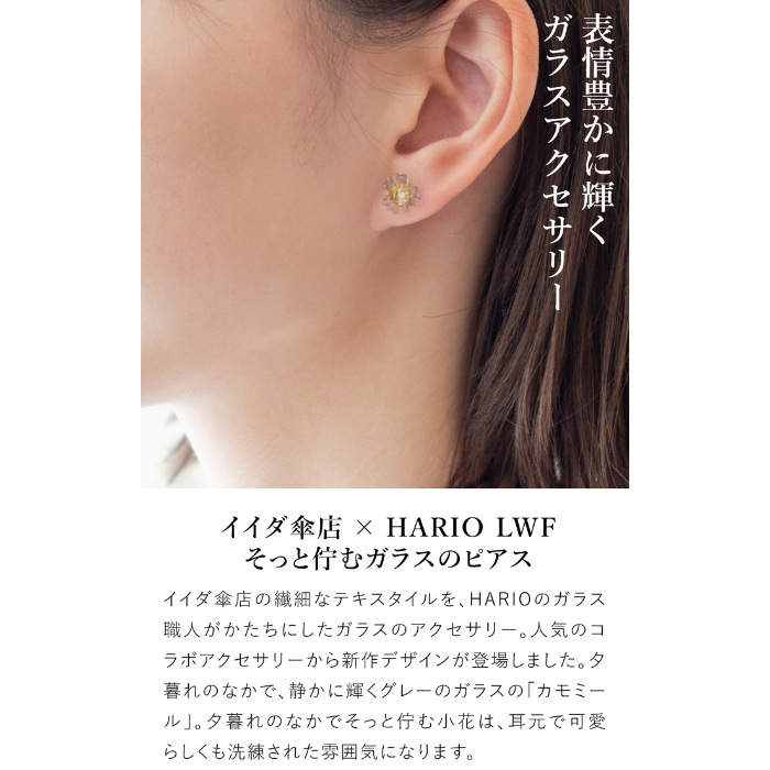 HARIO Lampwork Factory イイダ傘店 ピアス 夕暮れのカモミール グレー