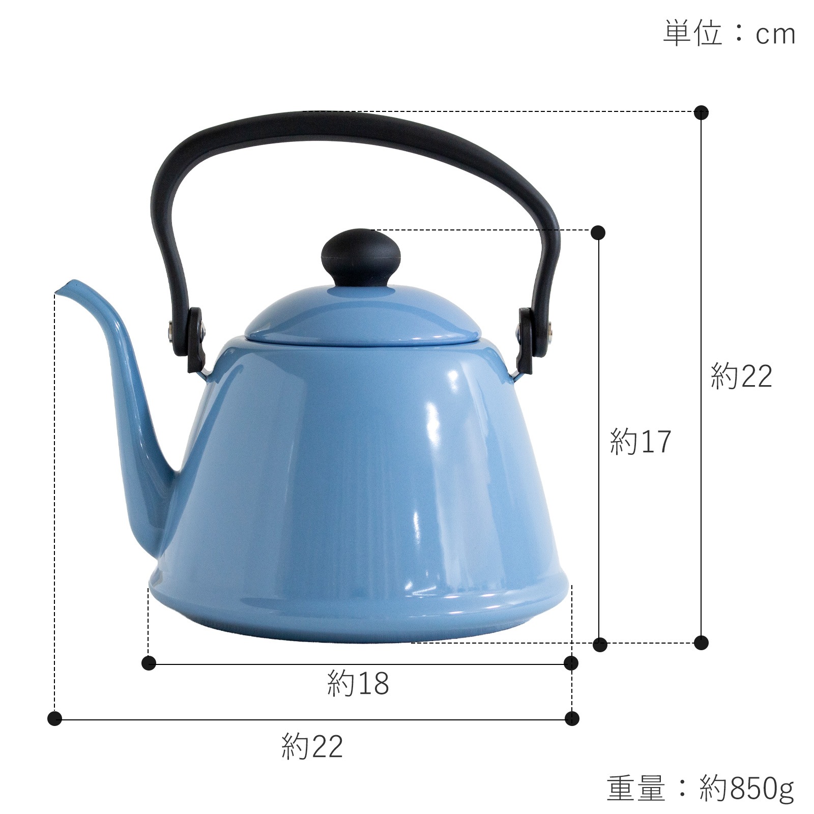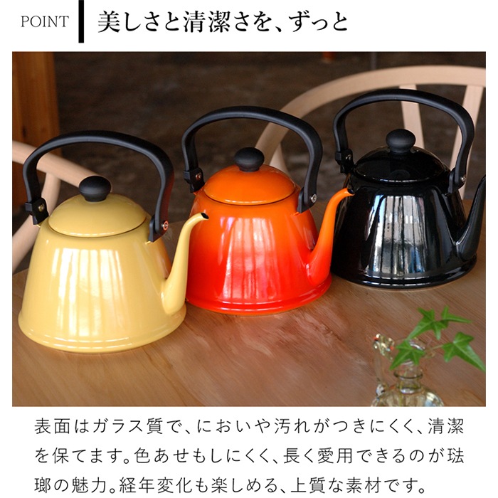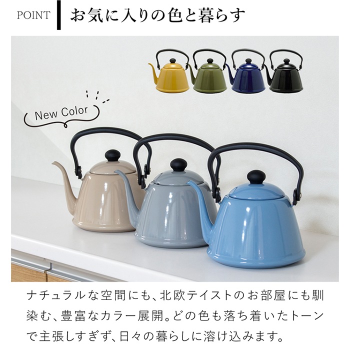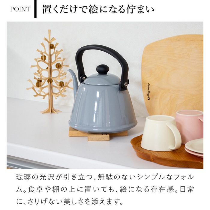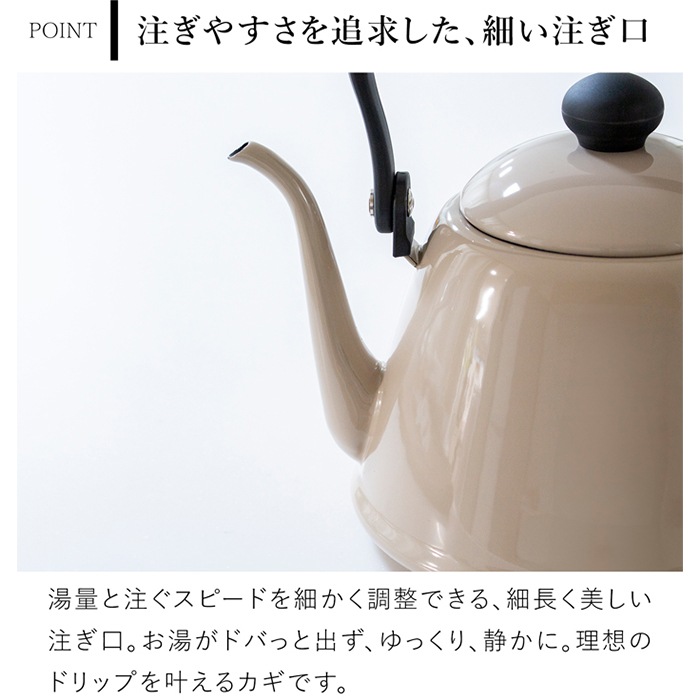 琺瑯製品の老舗メーカー、野田琺瑯のドリップケトル。美しい曲線を描いた細い注ぎ口で、コーヒーを丁寧にドリップするのに最適です。