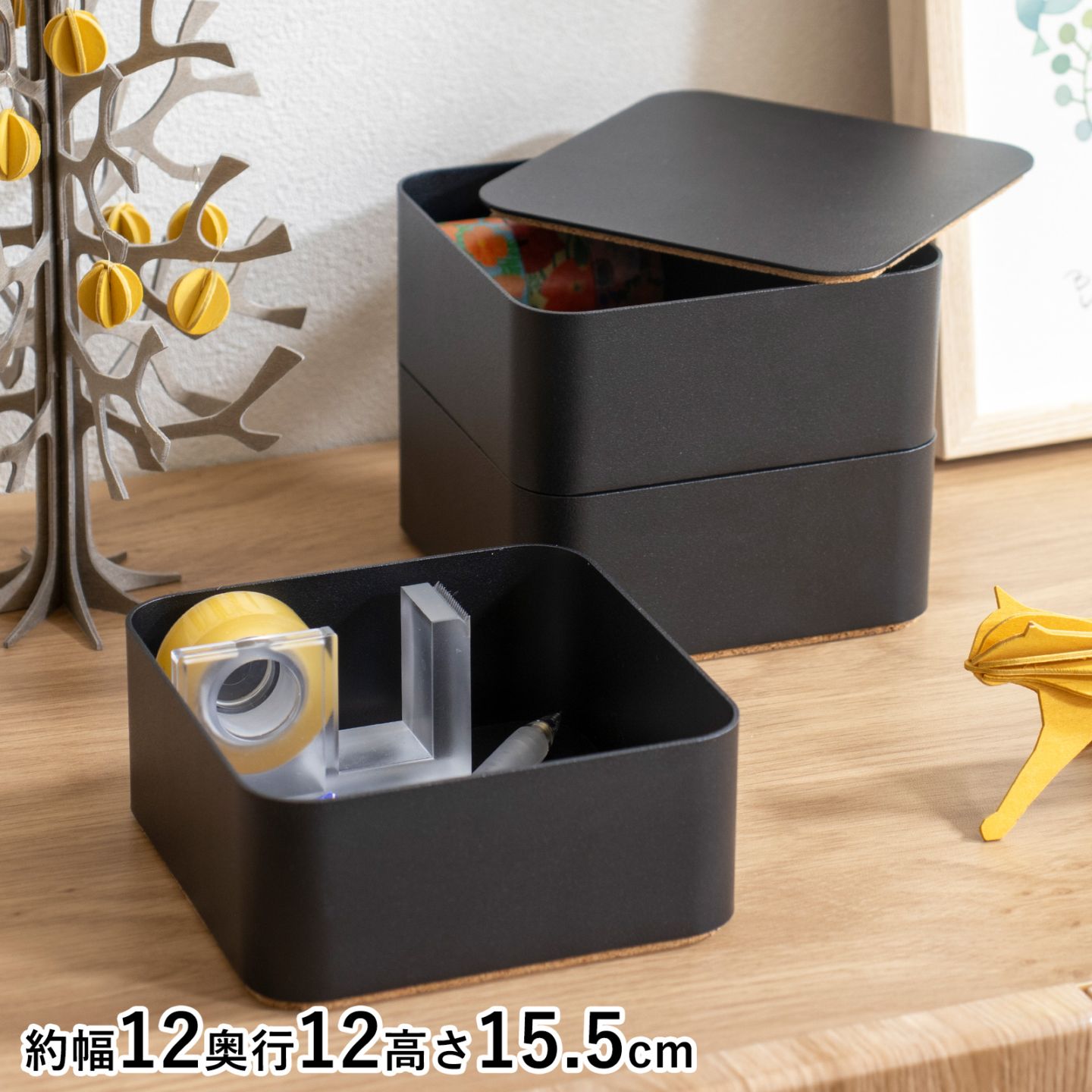 収納ボックス ふた付き 3段 スタッキング 卓上ボックス 蓋付き収納ケース 小物入れ ストレージボックス 卓上収納 黒 スチール コルク