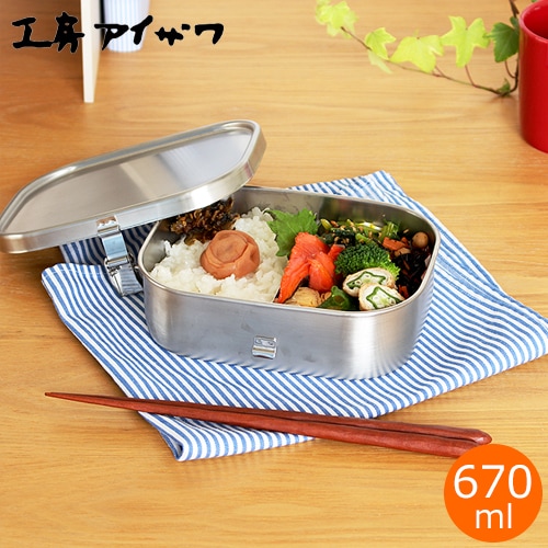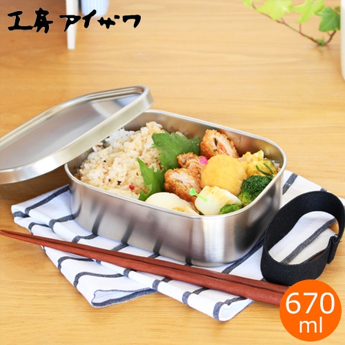 弁当箱 ステンレス 工房アイザワ 角型ランチボックス 670ml 中 一段 大容量 保温庫対応 汁漏れ防止 シンプル 日本製