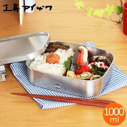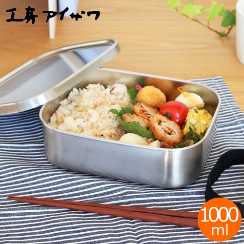 弁当箱 ステンレス 工房アイザワ 角型ランチボックス 1000ml 大 一段 大容量 保温庫対応 汁漏れ防止 シンプル 日本製