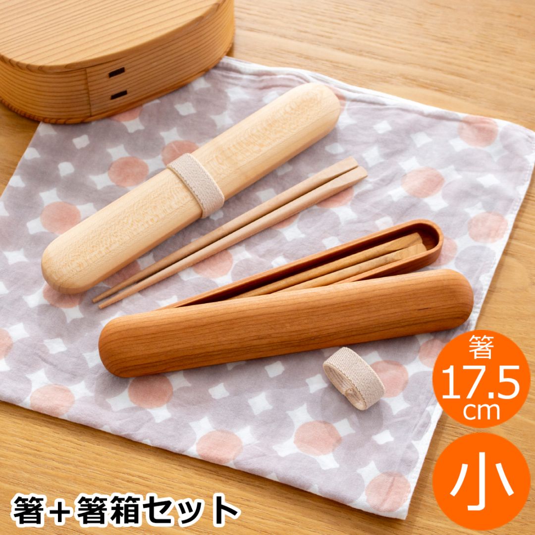 My箸セット 小 箸・箸箱セット 17.5cm 木製 桜 楓 チェリー メープル かぶせ蓋 お弁当 天然木 クラフト木の実 薗部産業