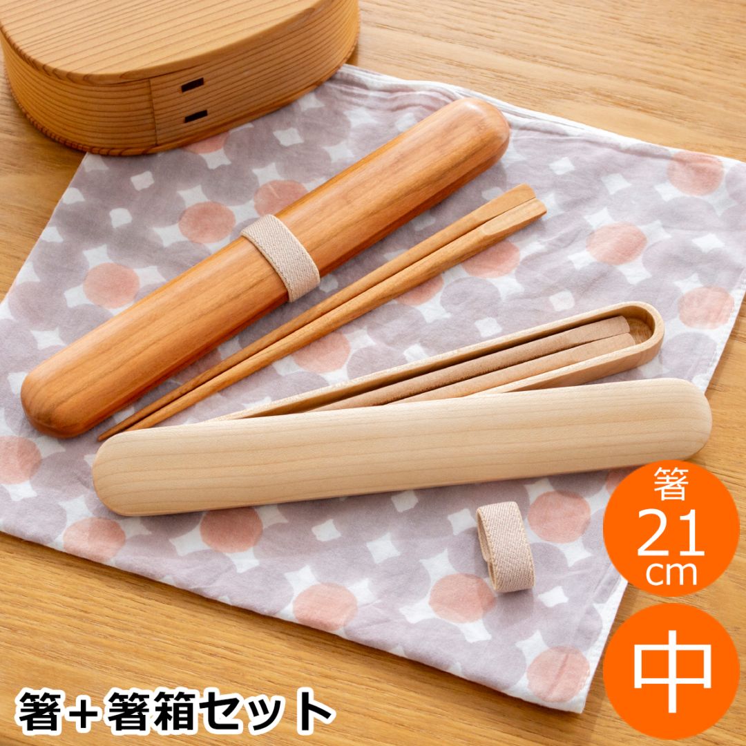 My箸セット 中 箸・箸箱セット 21cm 木製 桜 楓 チェリー メープル かぶせ蓋 お弁当 天然木 クラフト木の実 薗部産業