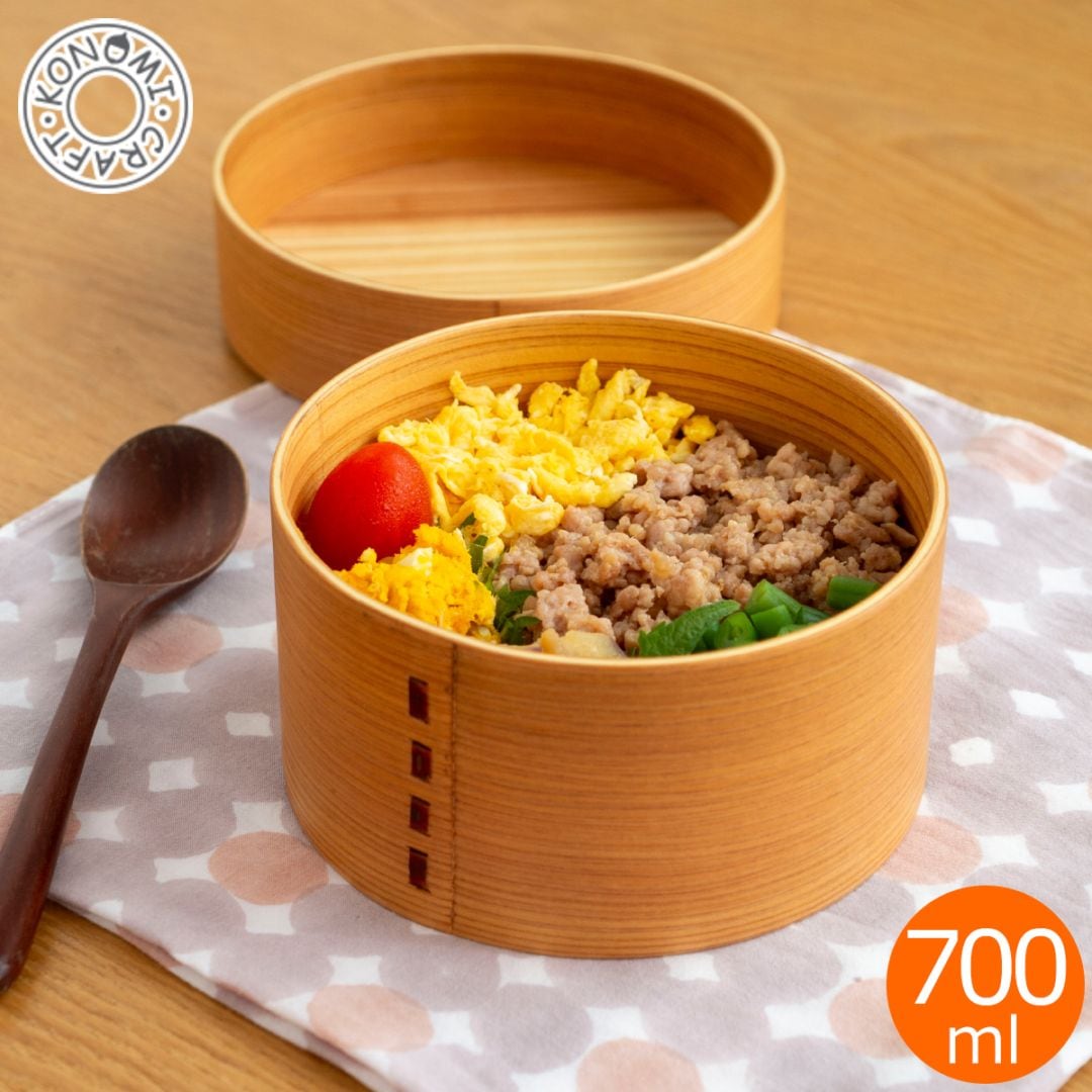 めんぱ まる 曲げわっぱ弁当箱 丸 1段 700ml かぶせ蓋 ウレタン塗装 ナチュラル 弁当箱 木製 薗部産業 SONOBE クラフト木の実