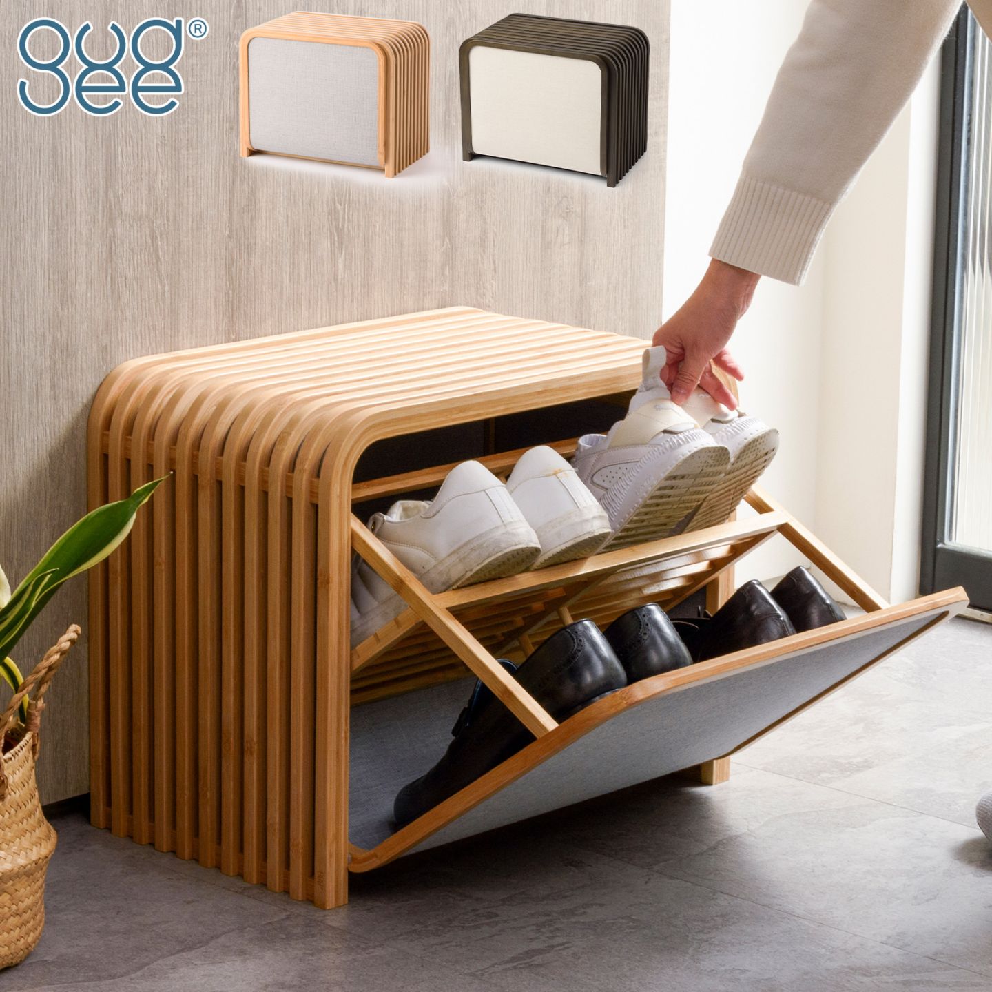 Gudee グディ 収納ベンチ シューズボックス 靴収納 玄関収納 ベンチ スツール 木製 竹 バンブー 布 TOLIN GudeeLife ■北海道・沖縄県は送料必要■