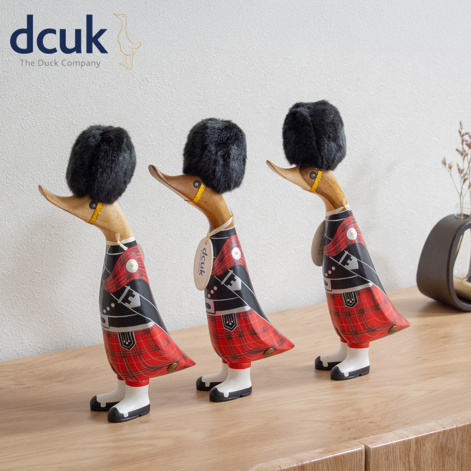 dcuk ダックリング スコッツガード 衛兵 木彫り アヒル 置物 天然木 木目 オブジェ 兵隊 イギリス 木製 手作り インテリア プレゼント ギフト Scots Guard Ducklings